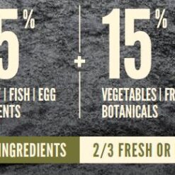 - Comprises 85% premium poultry and fish components, providing vital proteins, vitamins, and minerals.