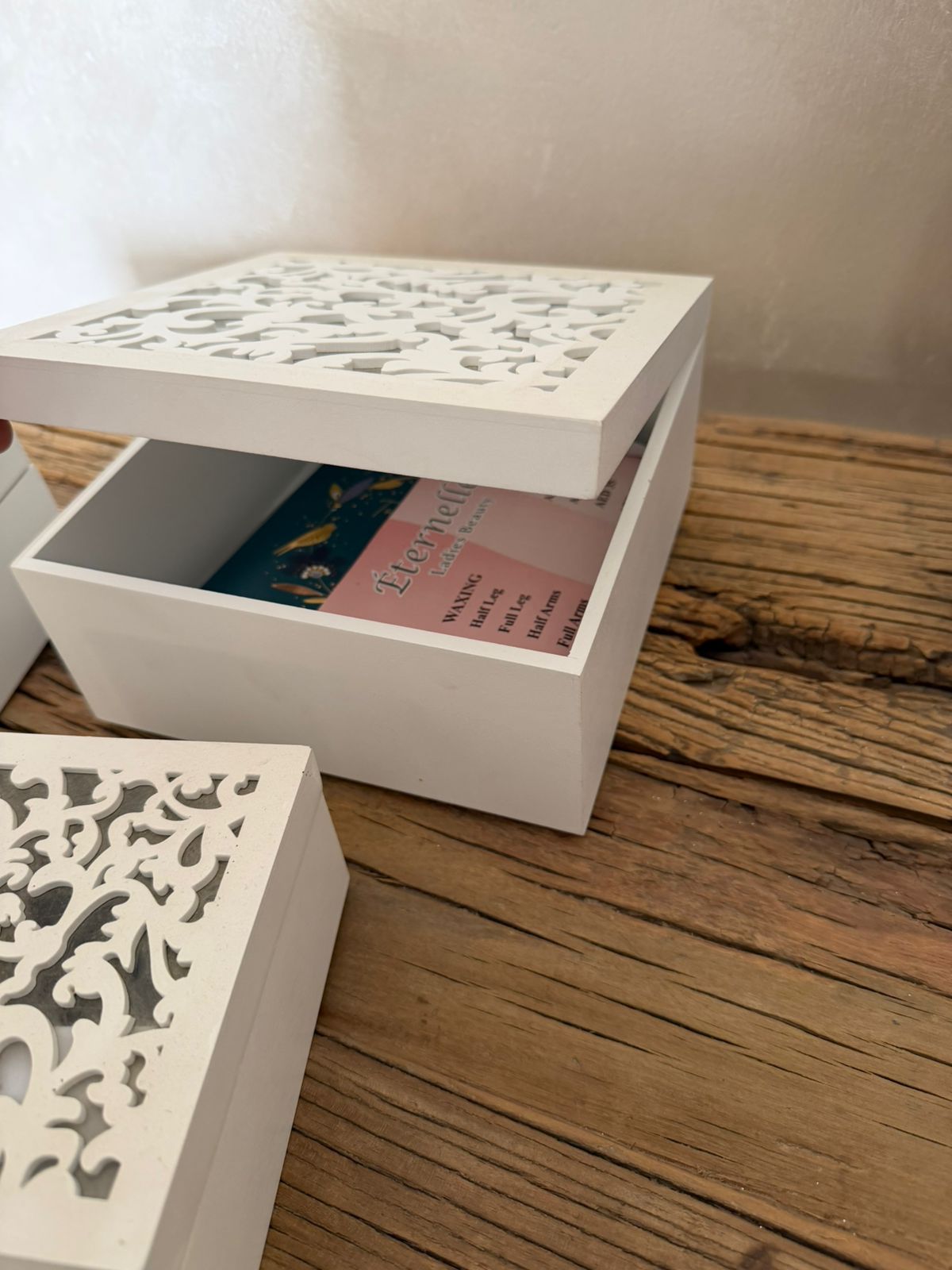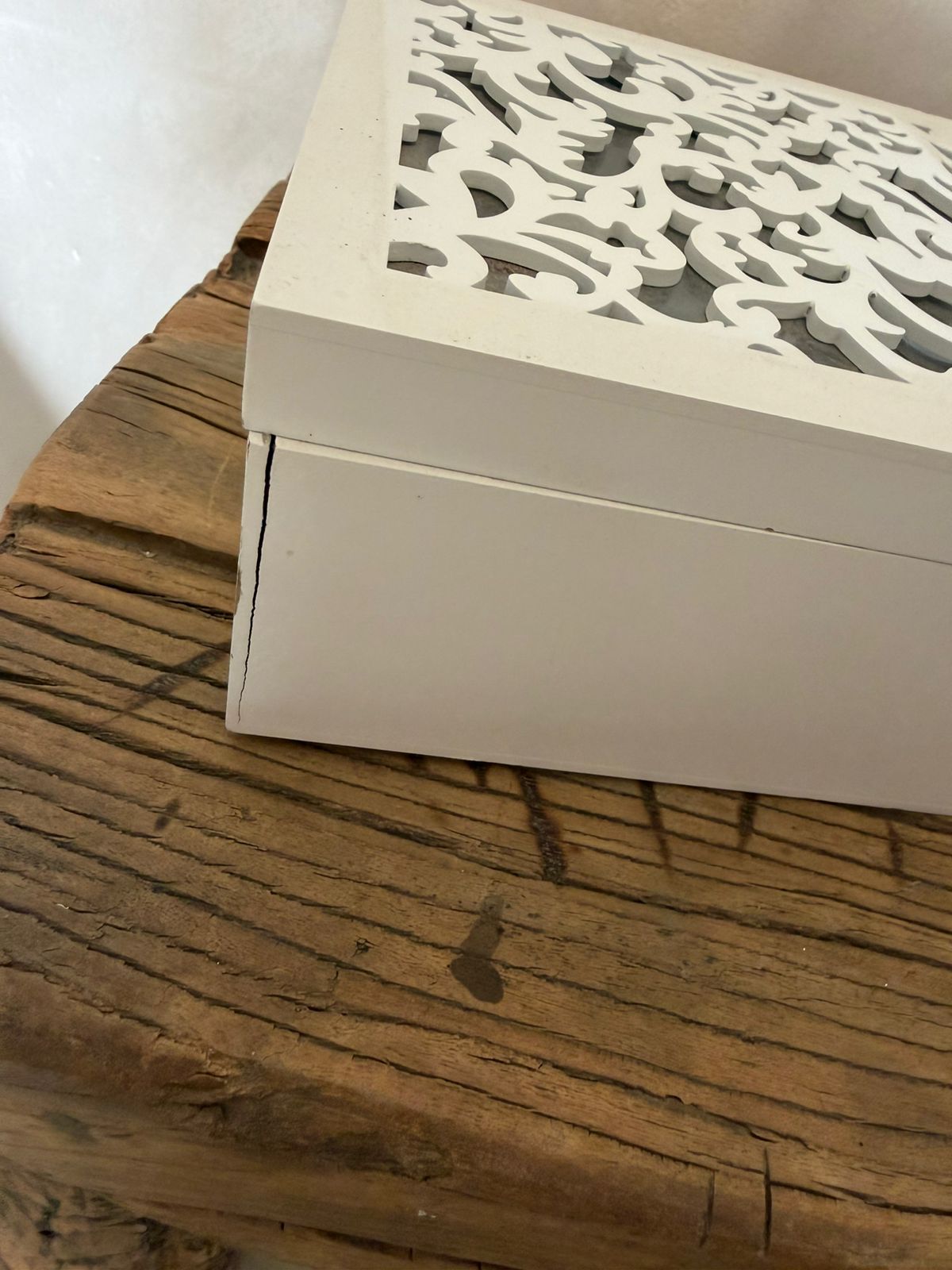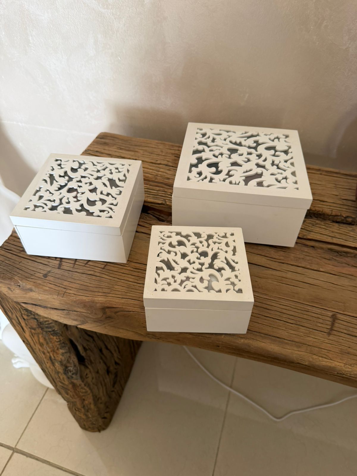 set of three wooden boxes with hinged lids – slight damage please see photos